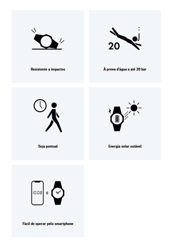 ▸Recurso de economia de energia: ponteiros que param para economizar energia quando o relógio fica no escuro