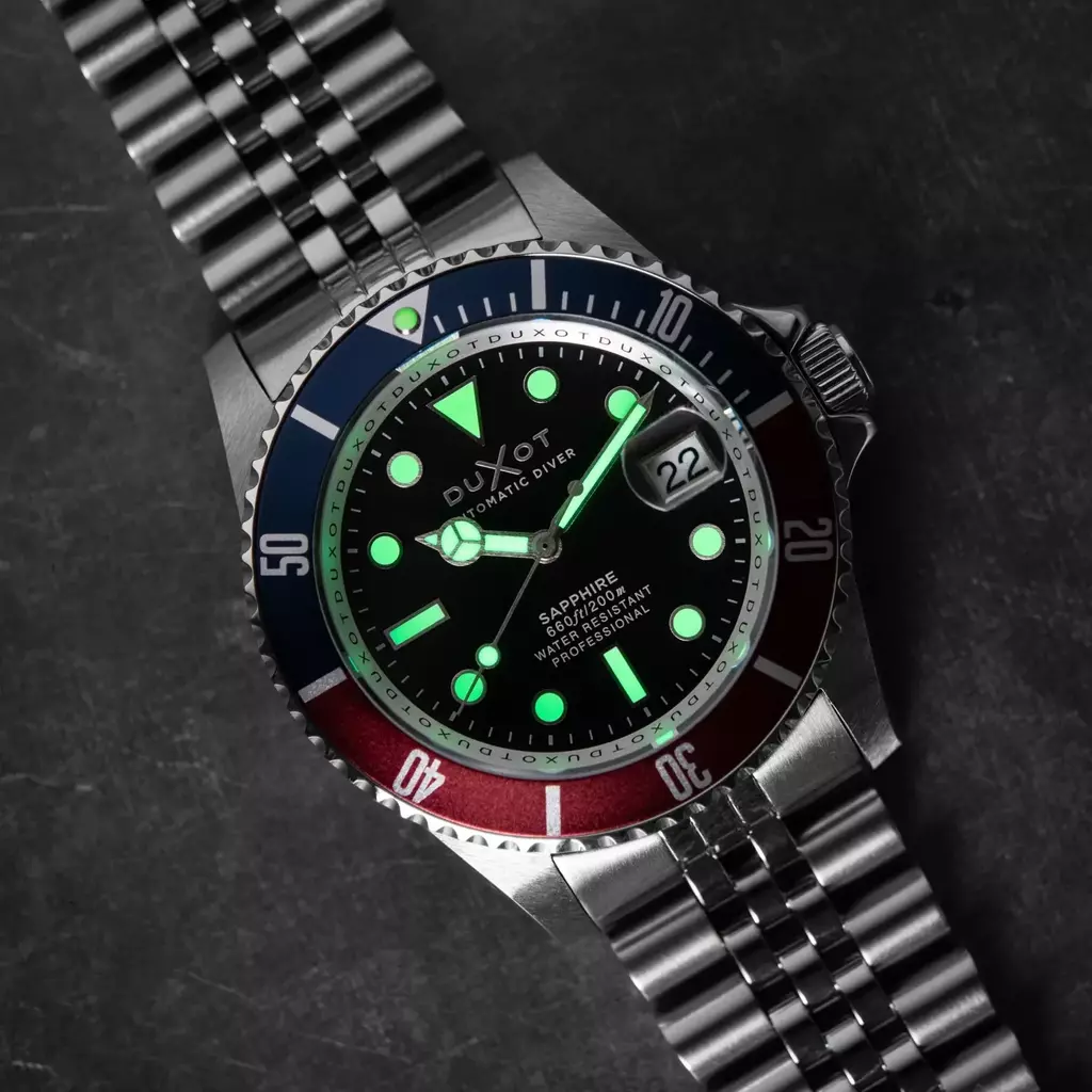 Feito para desempenhar, projetado para durar; movido por um confiável movimento automático japonês, protegido por cristal de safira e resistente à água até 20 ATM, este relógio é tão durável quanto estiloso. Desde lounges à beira da piscina até mergulhos em alto mar, ele está sempre no seu elemento.
