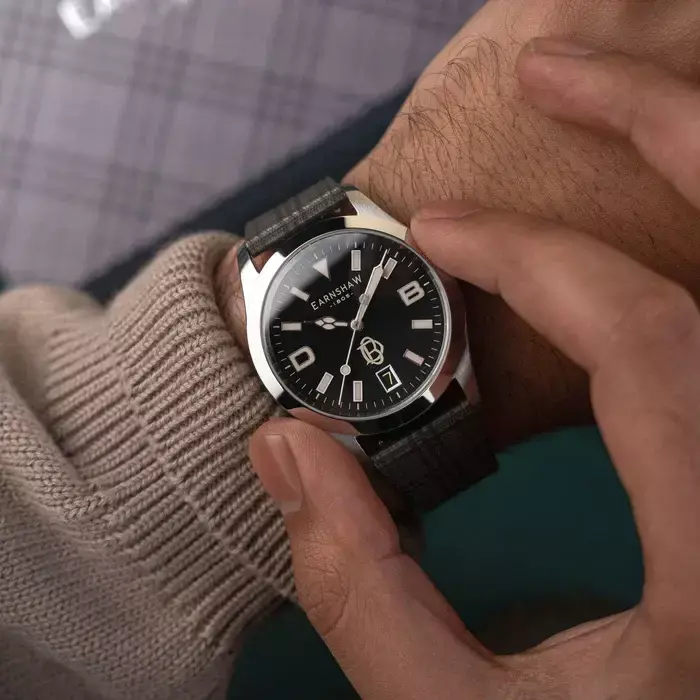 Uma colaboração exclusiva com o influenciador de moda e estilo de vida irlandês Damien Broderick. Inspirado na gravata Ascot — uma peça que Damien sabe como usar sem esforço — o Ascot Automatic combina elegância clássica com um toque moderno.