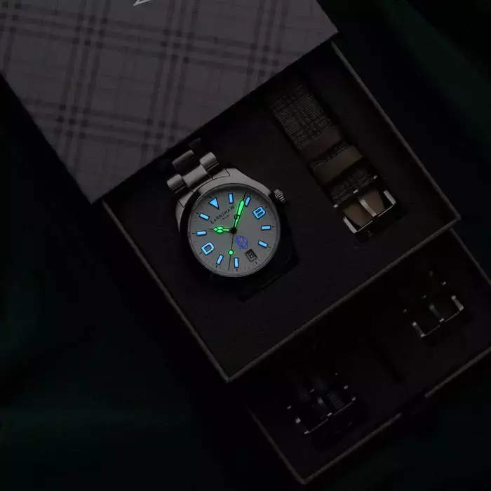 Feito para máxima versatilidade, o Ascot Special Edition vem com três tiras de liberação rápida — couro, nylon e tweed — permitindo uma transição sem esforço entre ambientes casuais e formais.