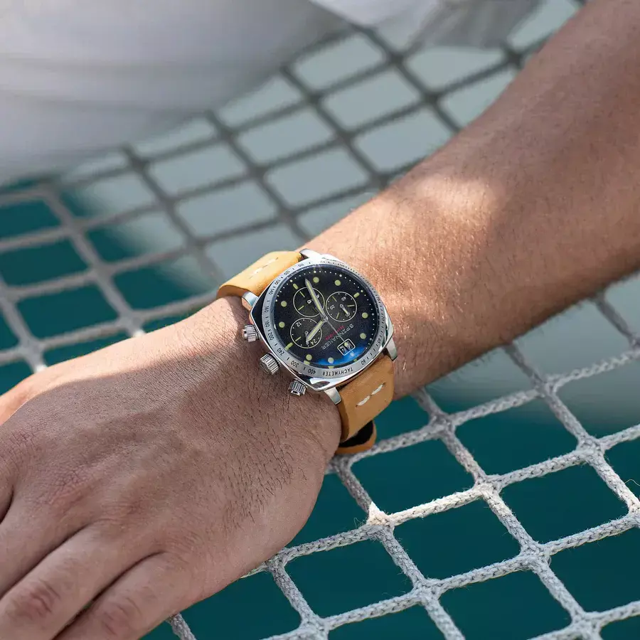O Hull Chronograph combina engenharia impecável com uma estética vintage em uma caixa acolchoada impressionante, porém sofisticada.